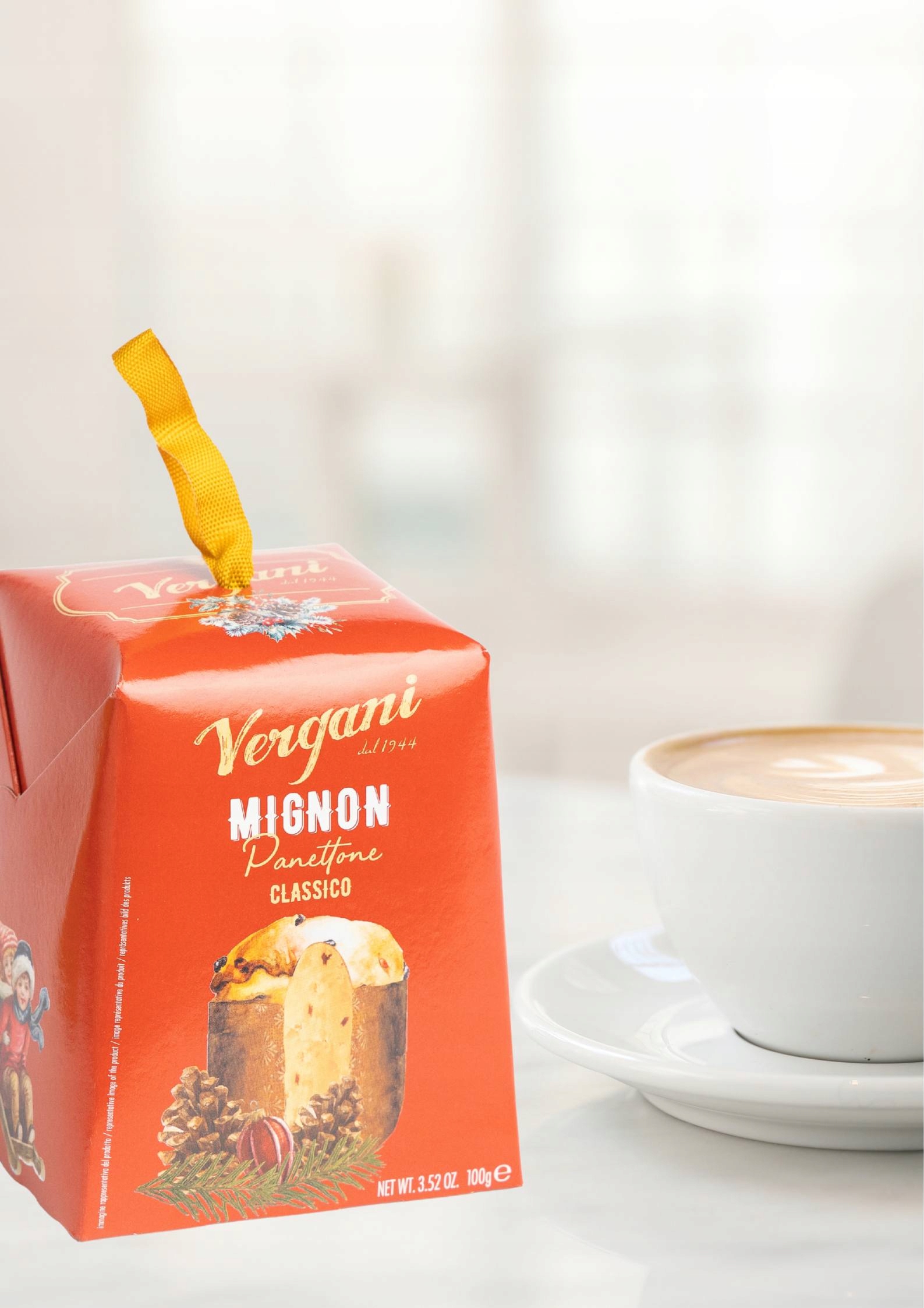 Характерная синяя цилиндрическая упаковка стала визитной карточкой бренда — символом элегантности, традиций и итальянского стиля. Сегодня Vergani — один из самых престижных кондитерских брендов в Италии, а его панеттоне экспортируется по всему миру как синоним подлинного качества и превосходного вкуса.