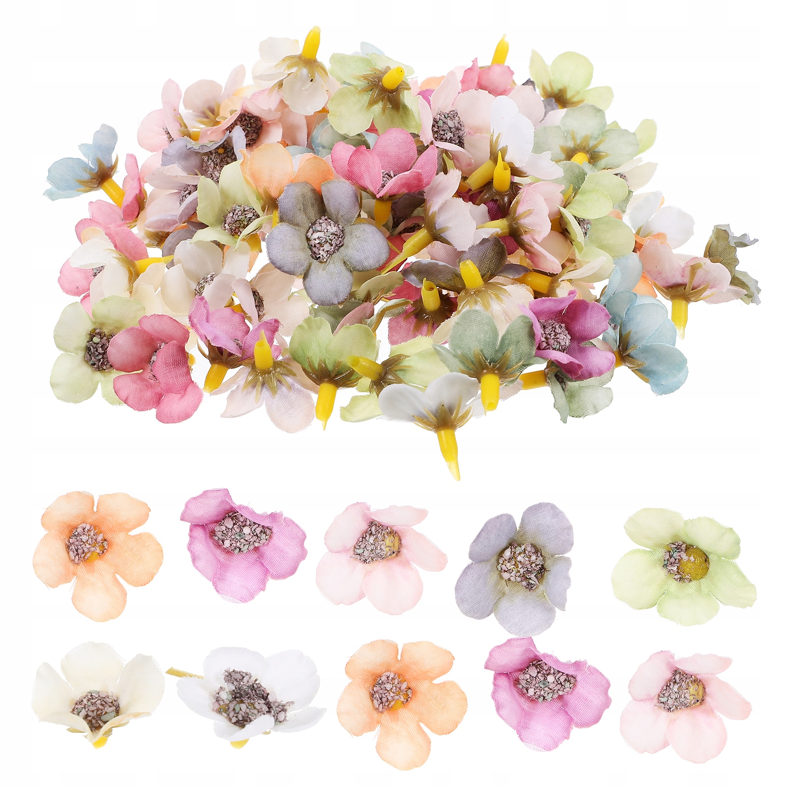 MINI JEDWABNY KWIAT WIELOKOLOROWA GŁÓWKA STOKROTKI 2CM200SZT