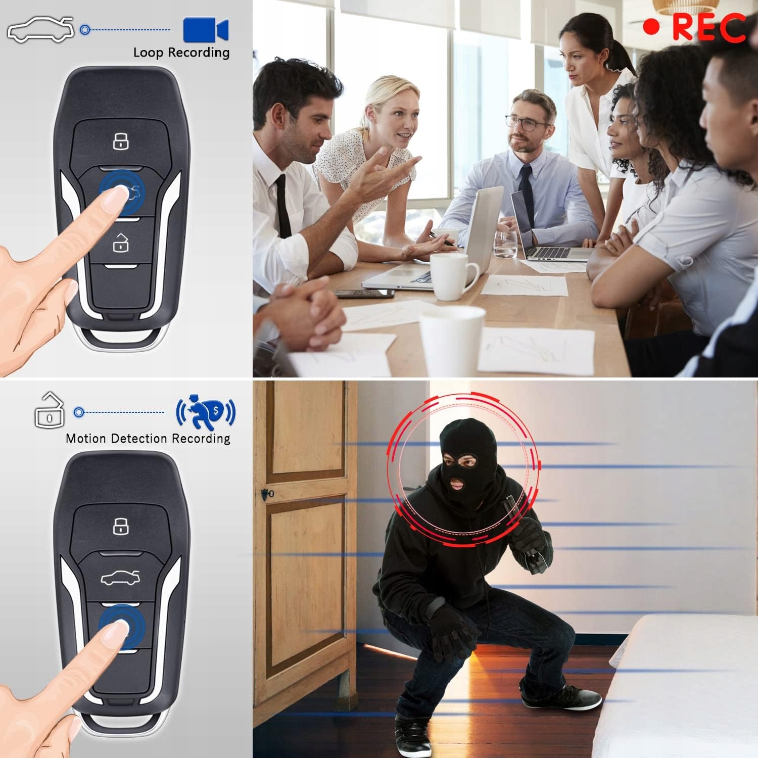 【Обнаружение движения и циклическая запись】Мини-камера автоматически начинает запись при обнаружении движения. Это позволит вам сэкономить больше места на карте памяти. Самые старые видео будут автоматически перезаписаны, когда SD-карта заполнится. Камера-брелок оснащена перезаряжаемой батареей емкостью 800 мАч и после полной зарядки может вести непрерывную запись в течение 6 часов.