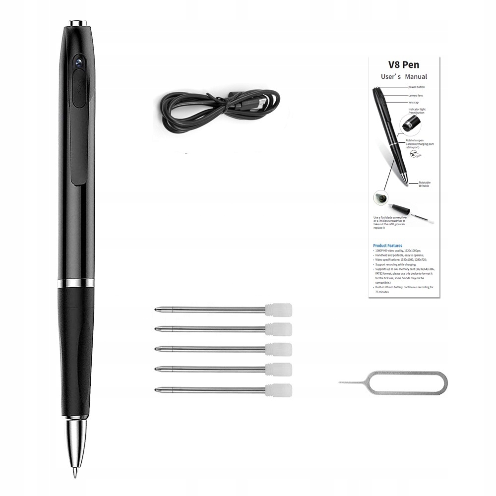 Камера спроектирована так, чтобы не вызывать никаких подозрений, объектив камеры практически невидим, и, кроме того, вас могут закрыть его полностью, чтобы никто не мог догадаться, с каким устройством они имеют дело. Благодаря тому, что устройство настолько незаметное, его можно использовать практически в любой ситуации. Ручка поместится в любой кармани поэтому мы всегда сможем иметь ее при себе при необходимости можно запечатлеть данный момент.