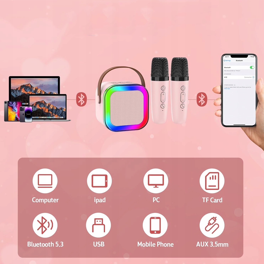 Мини -караоке набор 2 микрофонов + Bluetooth Детский беспроводной динамик