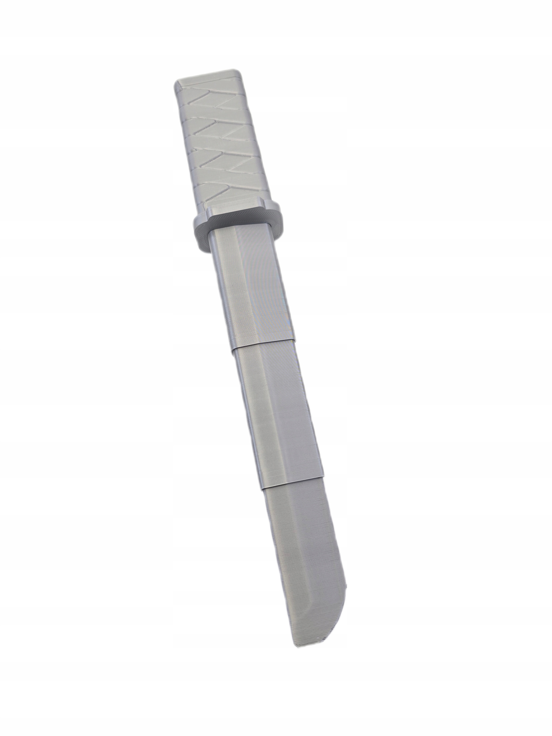 Сделанная с вниманием к деталям, катана не устойчива к броскам и ударам. Изделие напечатано на 3D-принтере, поэтому могут быть незначительные артефакты печати, не влияющие на конечный визуальный эффект. Заказчик приобретает услугу печати дизайна, которая общедоступна на веб-сайтах 3D-моделей Thingiverse, Makerworld и Printables.