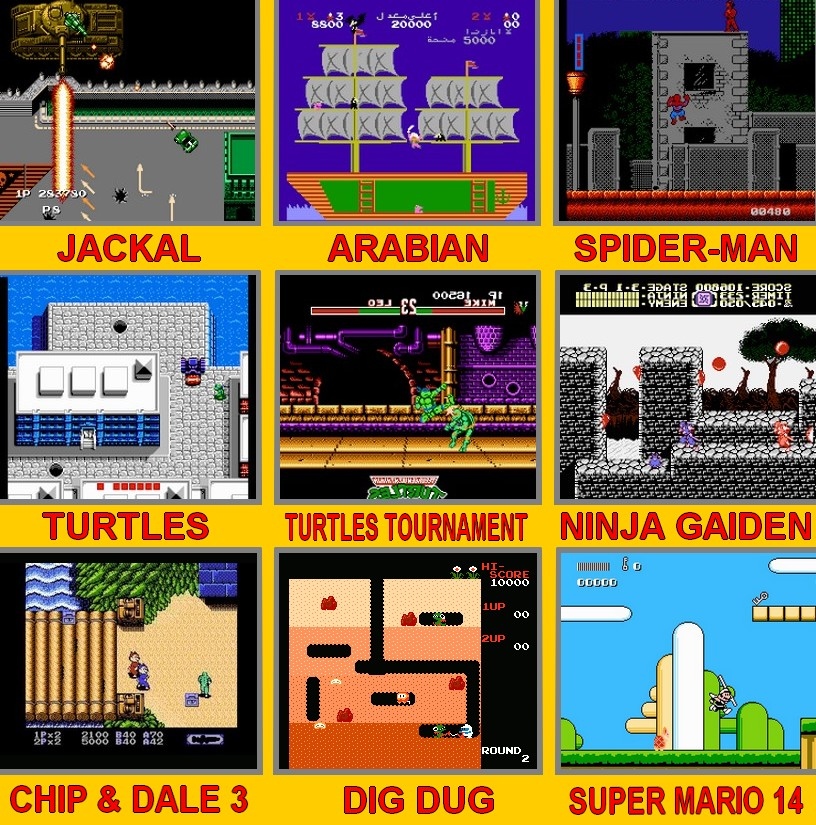 Консоль содержит 400 установленных игр (или вариантов запуска данной игры), включая ретро-игры, такие как:
