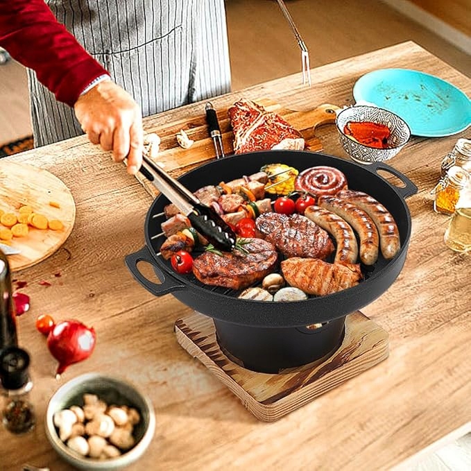 Откройте для себя удобство и радость приготовления на гриле где угодно с помощью портативного бездымного корейского настольного гриля. Идеально подходит для вечеров с близкими, пикников, кемпинга или барбекю дома – он обеспечивает исключительный вкус еды и максимальное удобство использования.