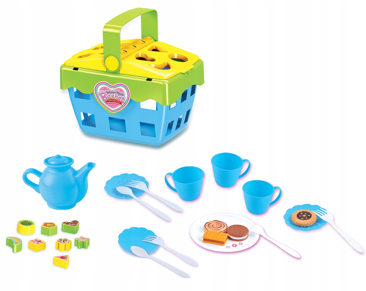 Дополнительно в корзине лежат 4 печенья и белая тарелка. В набор также входят 8 блоков с наклейками различной формы для сортировки. Наклейки облегчают сортировку для вашего ребенка.