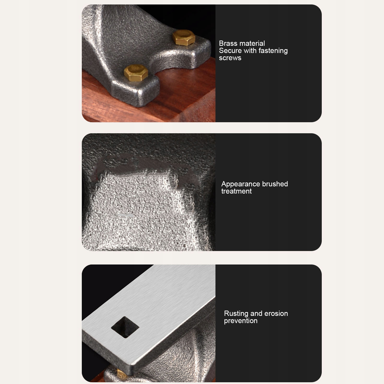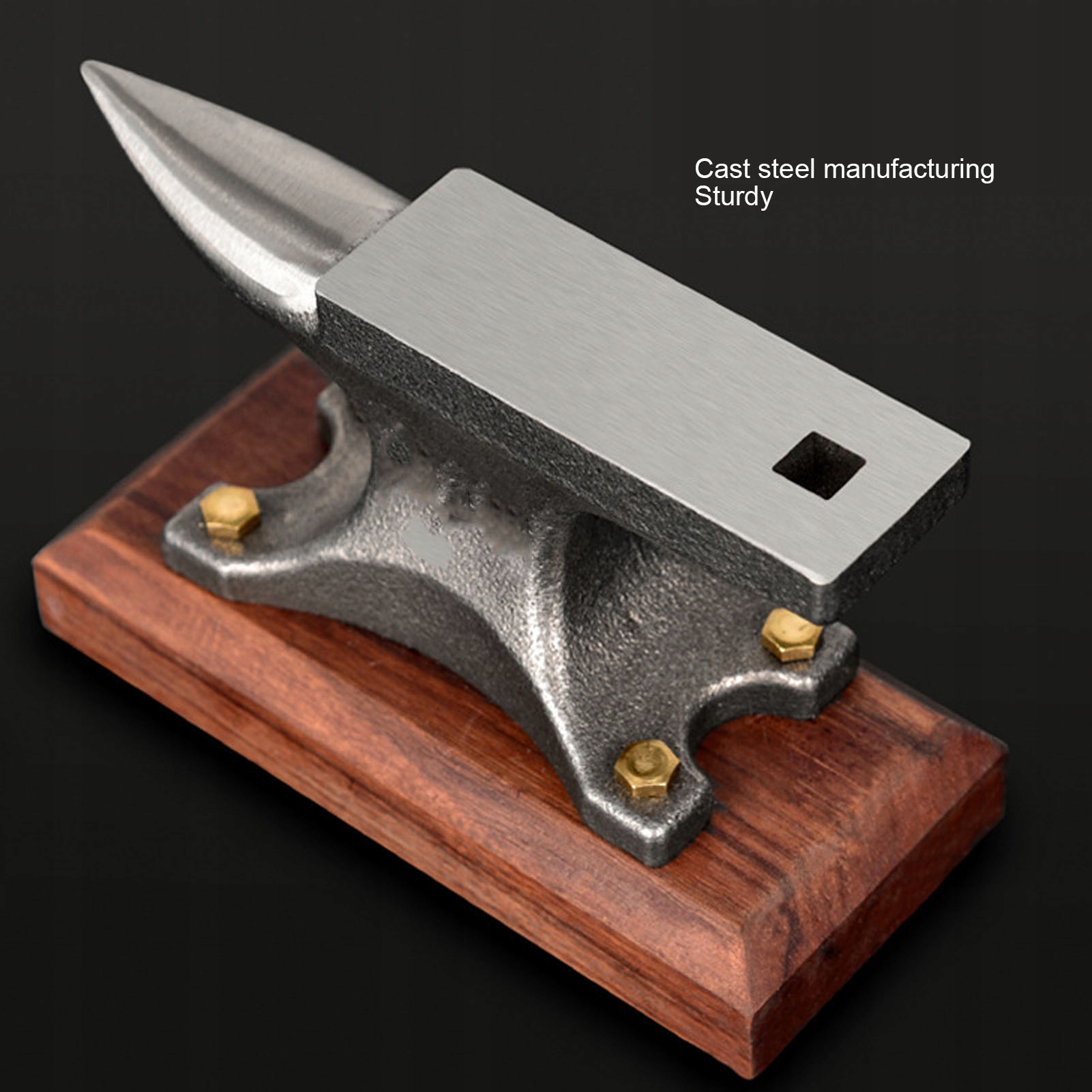1. Дерево и металл: Наша мини-наковальня, изготовленная из дерева и высокоуглеродистой стали, имеет полированную поверхность, обеспечивающую исключительную гладкость и долговечность, а также устойчива к износу и окислению.