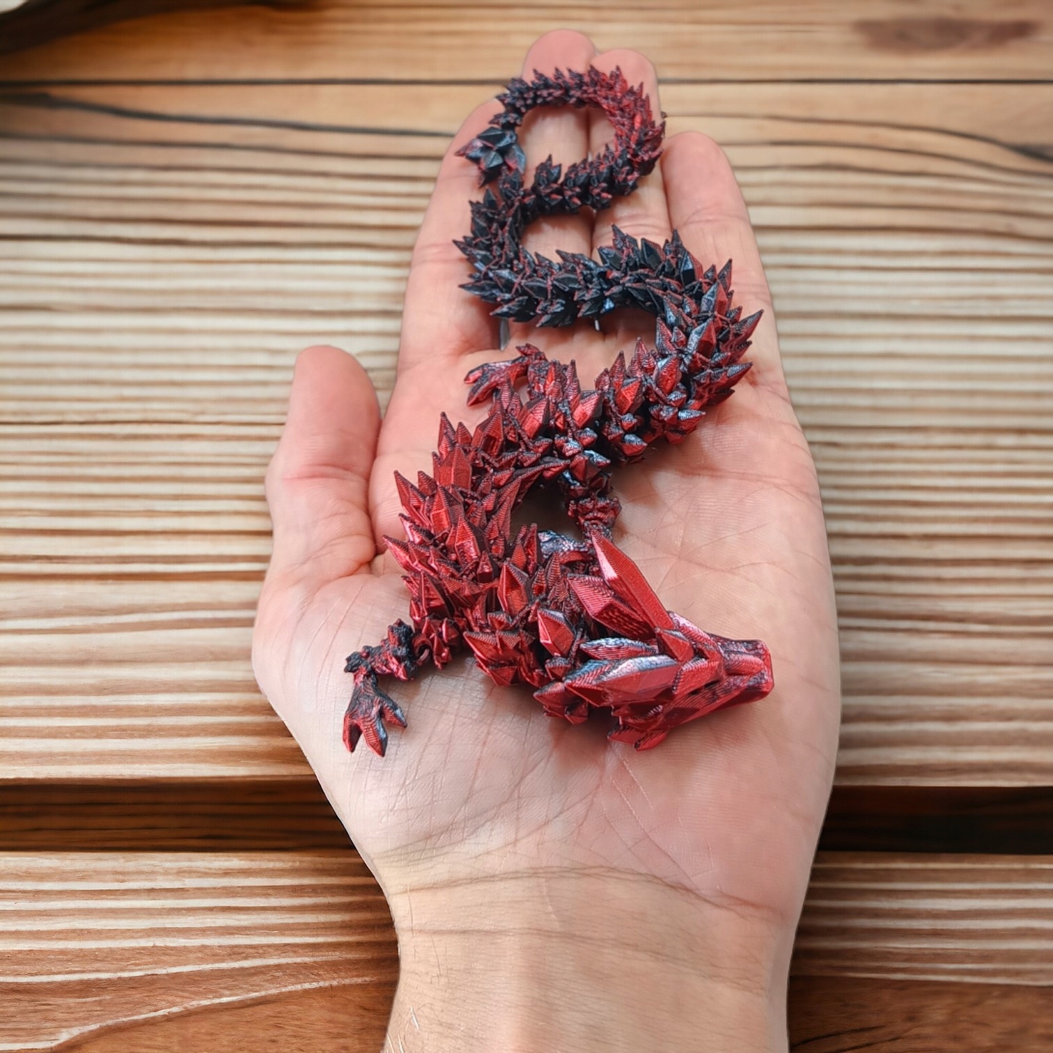 ✅ Маленький шарнирный дракон — необыкновенное существо, излучающее нежное сияние красных и черных кристаллов, из которых состоит его тело. Длина всего 30 сантиметров, и она кажется волшебной фигуркой из драгоценного камня, которая оживает в ваших руках.