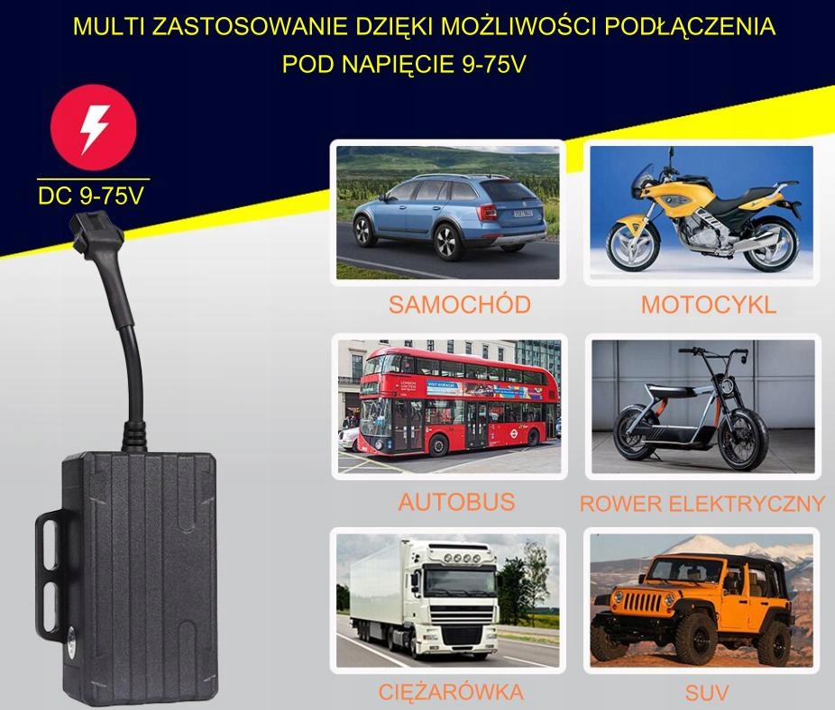 Кабель питания +- позволяет подключить его практически в любом месте автомобиля, чтобы потенциальный вор не смог его найти. Можно подключать к легковым, грузовым автомобилям, строительной и сельскохозяйственной технике, электровелосипедам и т.п. - работает со всеми устройствами, работающими от аккумуляторов напряжением 9-75 В
