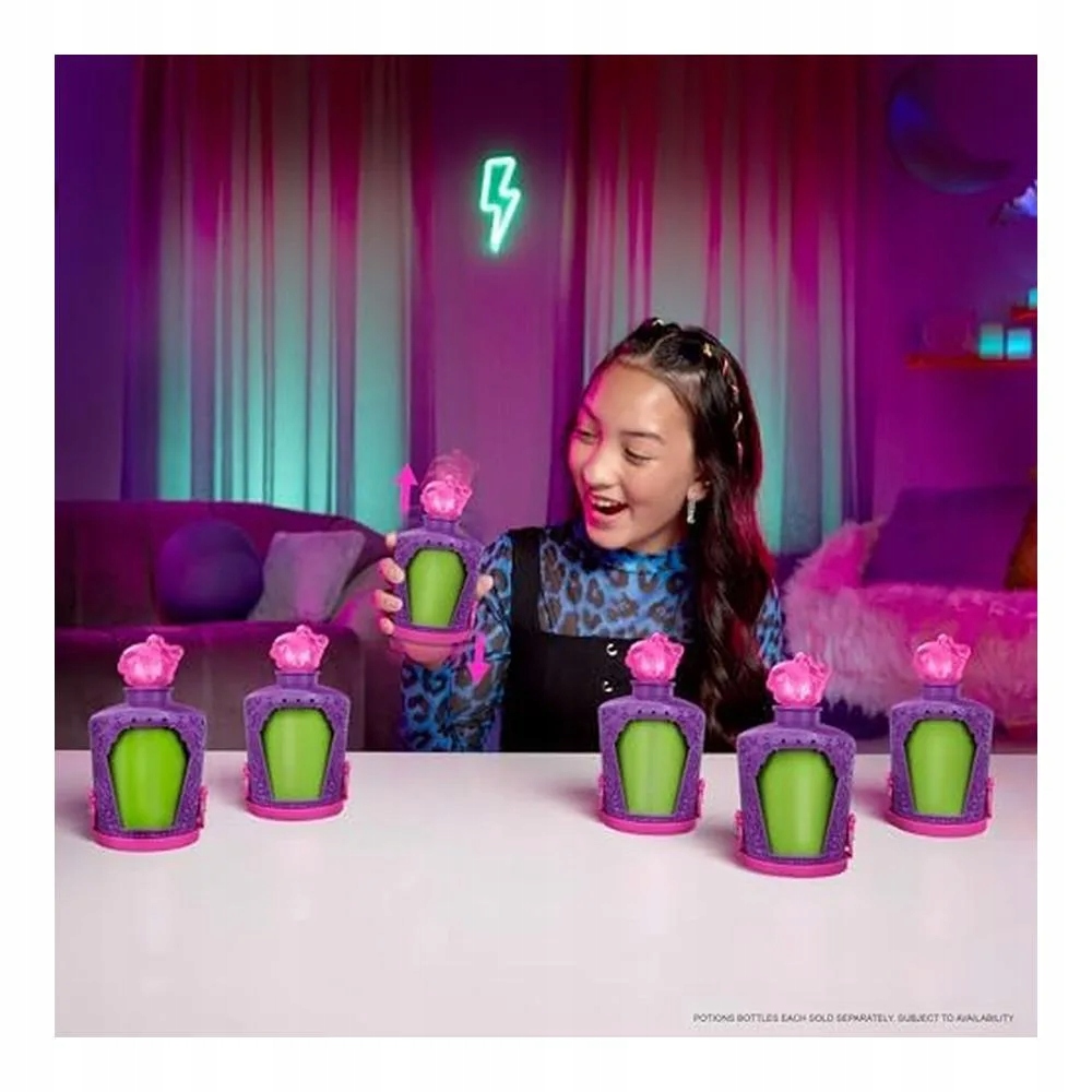 Мини-кукла Monster High POTIONS Potions — идеальный способ весело провести время в мини-версии! В каждой бутылочке в форме зелья находится маленькая кукла Monster High™ высотой 7,5 см и три волшебных украшения для творческого использования. Игра посвящена «смешиванию эликсира»: налейте в бутылку воду, добавьте украшения, встряхните и любуйтесь полученным действием зелья. Затем вылейте зелье и найдите спрятанную мини-куклу!