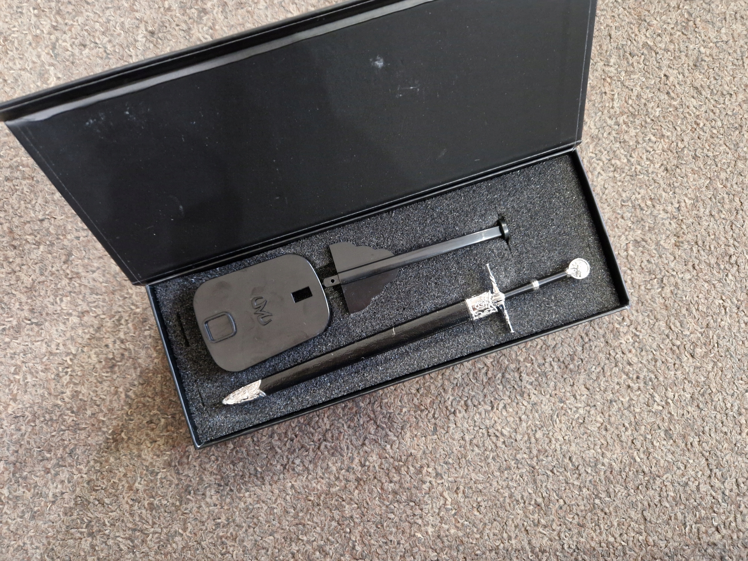 Мини-меч Геральта в ножнах 22 см, вдохновленный «Ведьмаком», открывалка для писем «Ведьмак», а также подставка и подарочная коробка KW1136 ПОВРЕЖДЕН