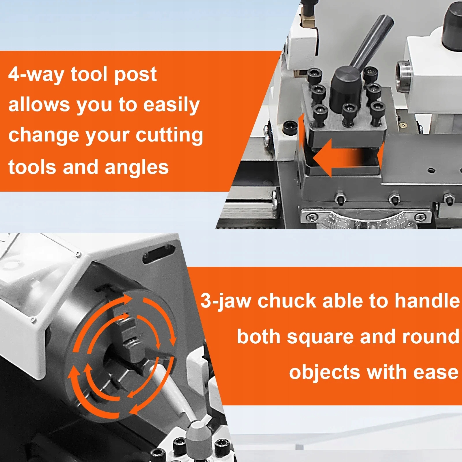 Self -Cent 3 -jacklet -ручка тестируется с точностью и повторением для постоянной регулировки цилиндрических материалов. Tylka Anti -Spray Cover в наборе. Шпиндель поддерживается точными коническими подшипниками с точностью шпинделя в пределах 0,01-0,02 мм.