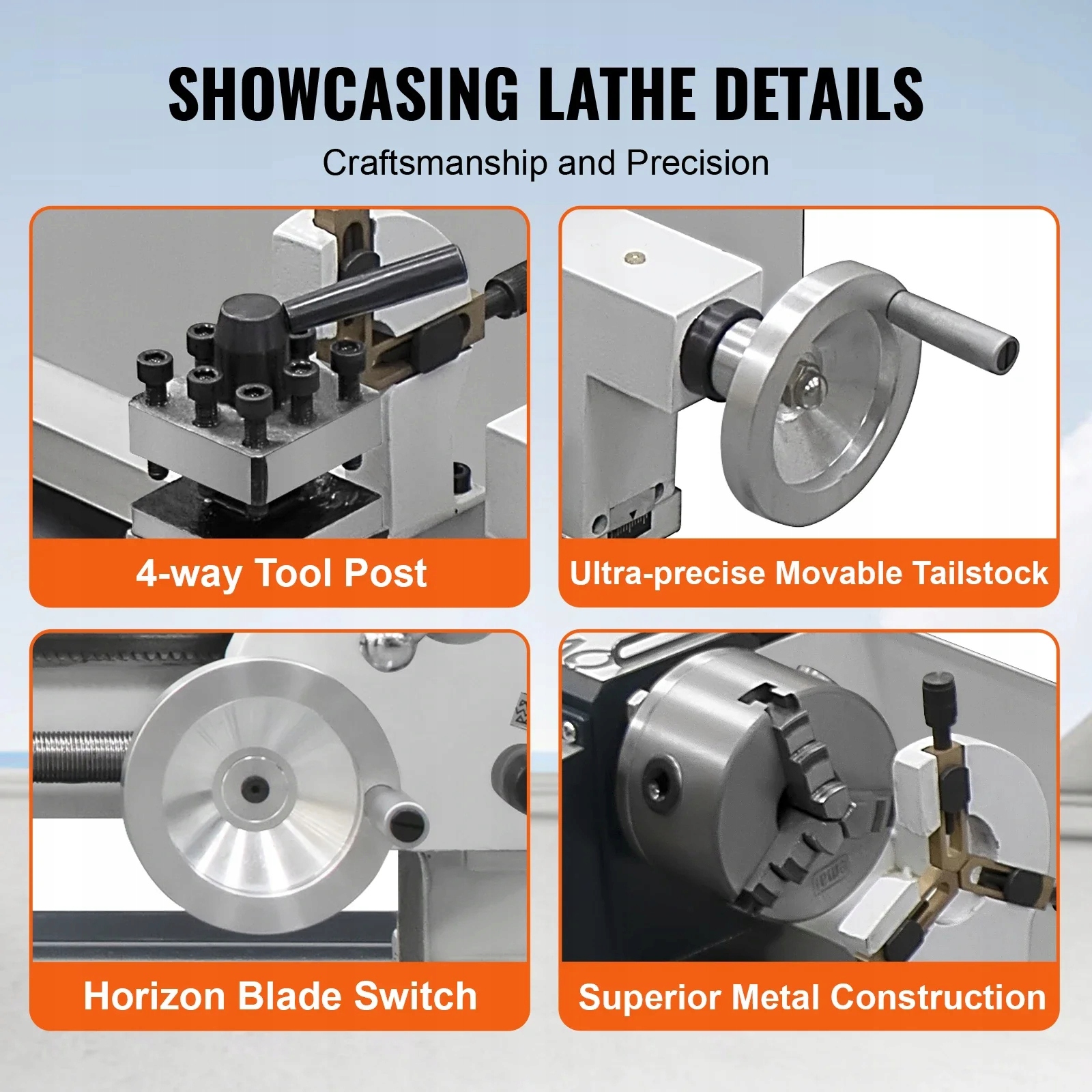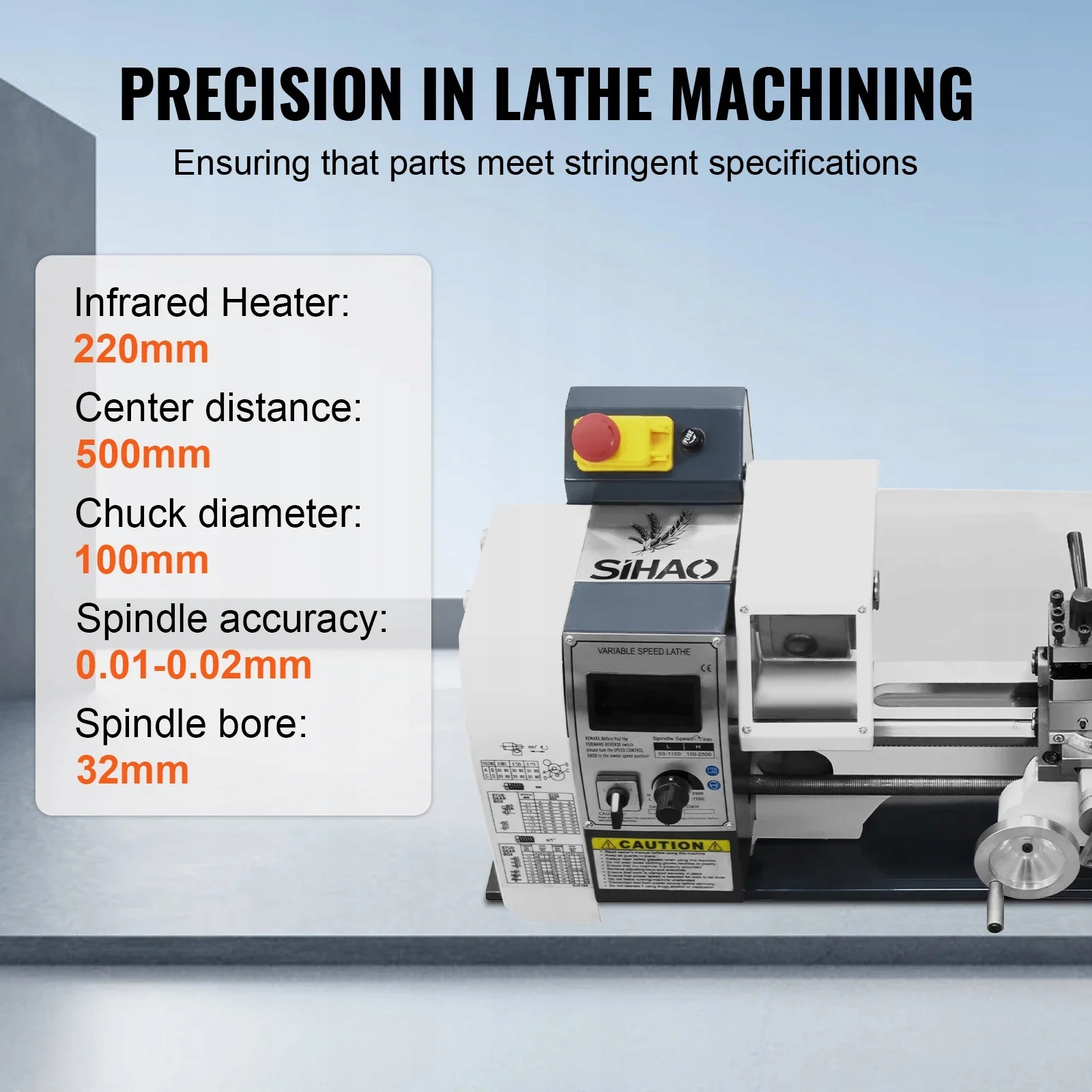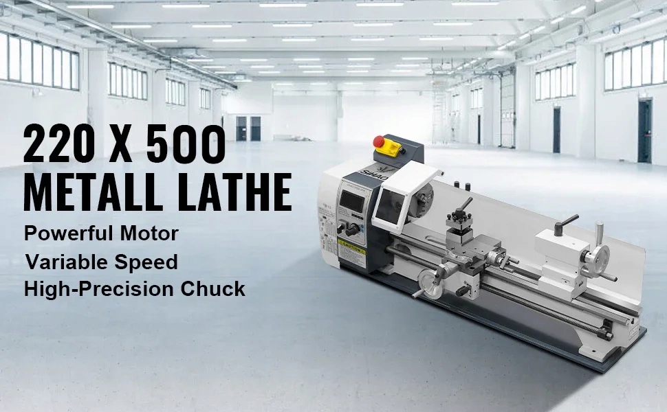 Точный металлический мини-токар 220x500 имеет двигатель W, ручка с 3 частями, шпиндельный конус MT5 и конус MT2. Разработанный для выполнения различных типов металлического прокатки, простых в использовании. С помощью высокочастотного процесса упрочнения и точного шлифования высокого качества чугуна. Скорость шпинделя 0-2500 об/мин/мин ± 10% об/мин регулируется непрерывно. Постоянный отдых и следующий отдых в случае больших и/или тяжелых заготовков.
