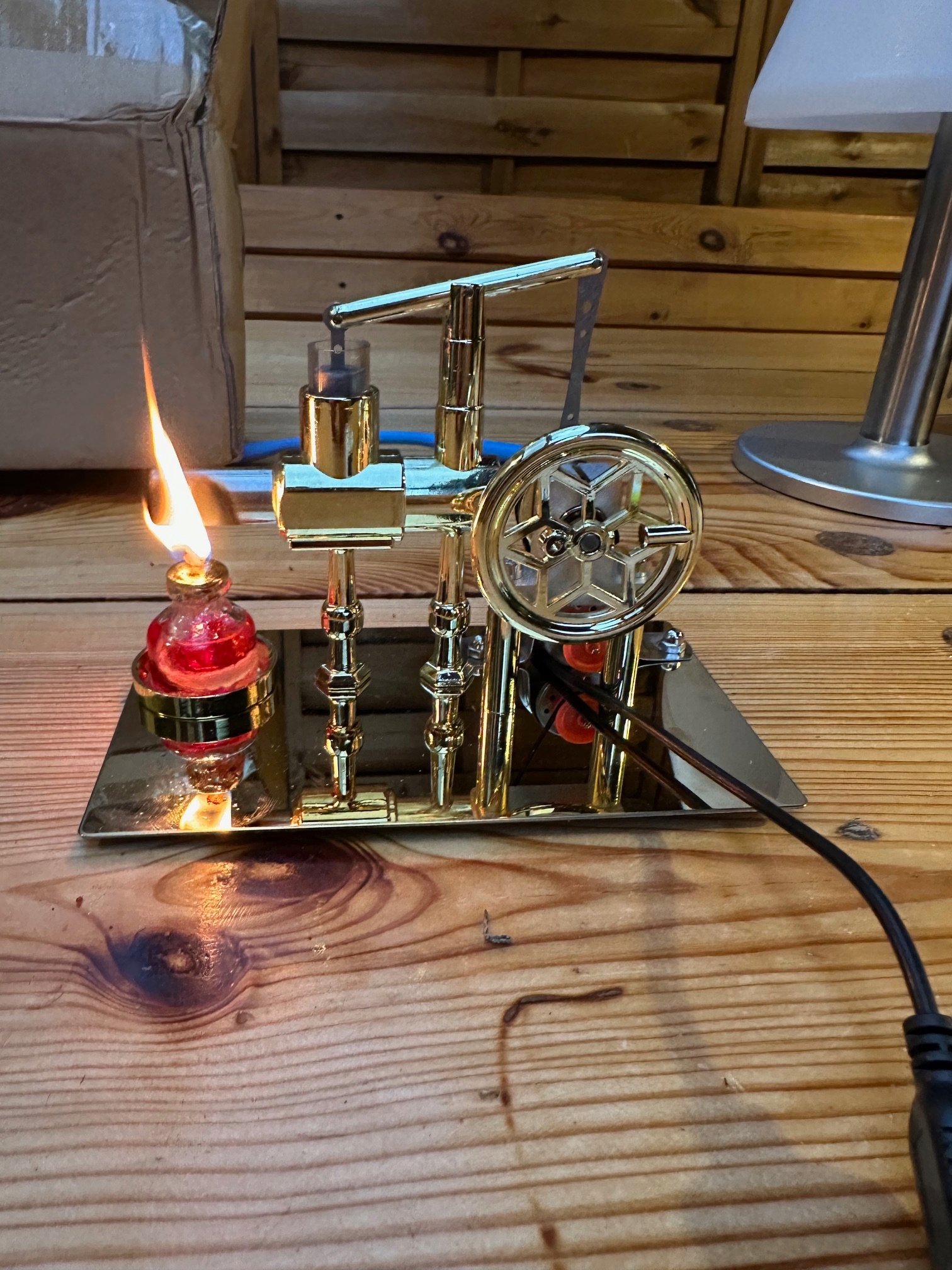 ✅ реалистичный дизайн - верно воспроизводимый механизм с маховиком, поршнем и алкогольной горелкой.
