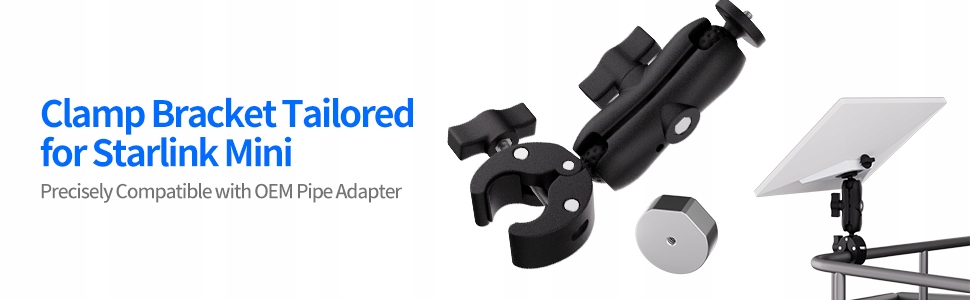 Механизм зажима: держатель мачты Starlink может быть легко прикреплен к мачте с механизмом зажима. А алюминиевый блок идеально подходит для адаптера OEM -трубки, прикрепленного к мини -антенне Starlink.