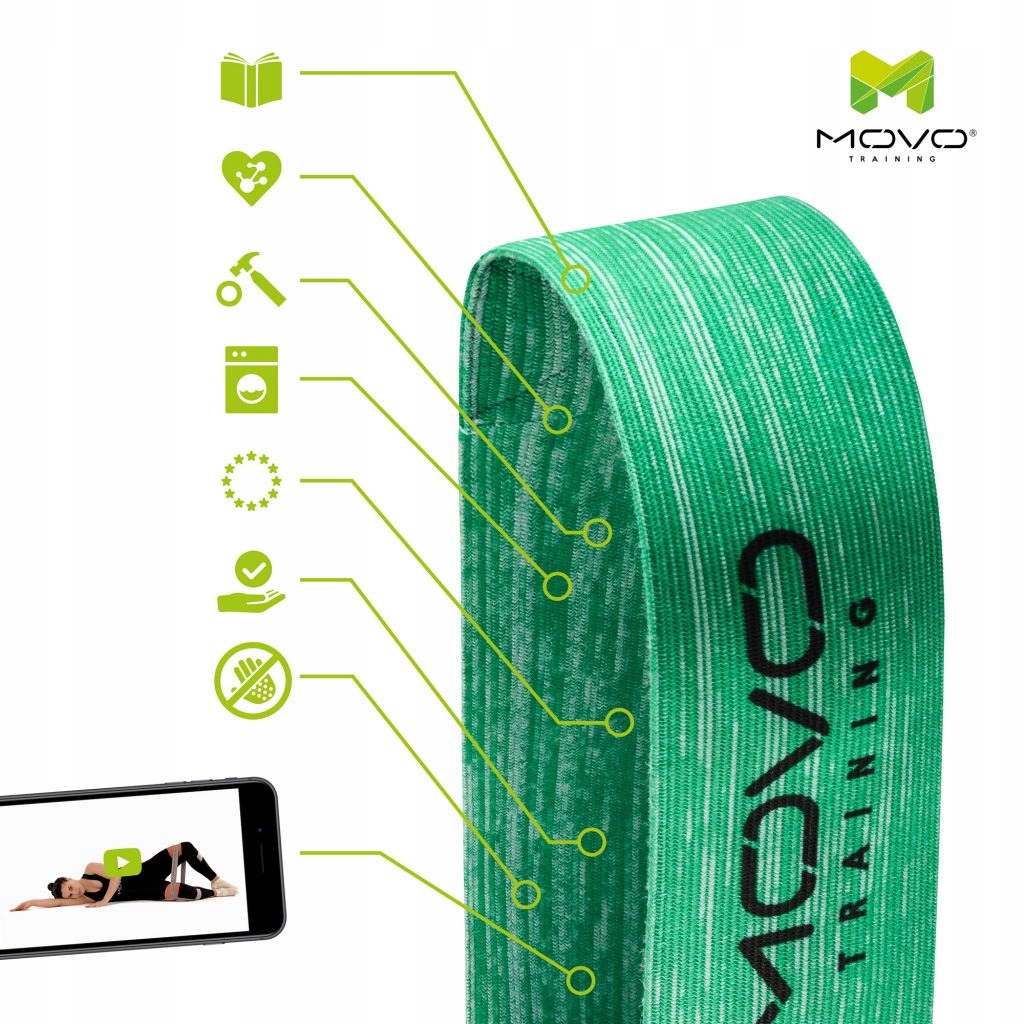 MOVO ® Mini Band SET отличается материалом, из которого он изготовлен. Специальная ткань, приятная и комфортная для тела, позволяет комфортно тренироваться, исключая ощущение стягивания и раздражения кожи. MOVO ® Mini Band приятно мягок при контакте и в то же время гибок и долговечен.