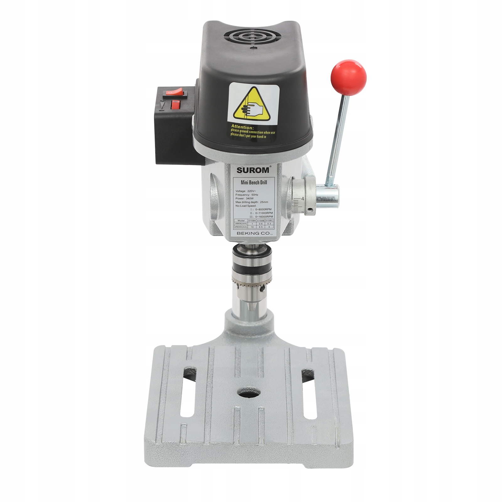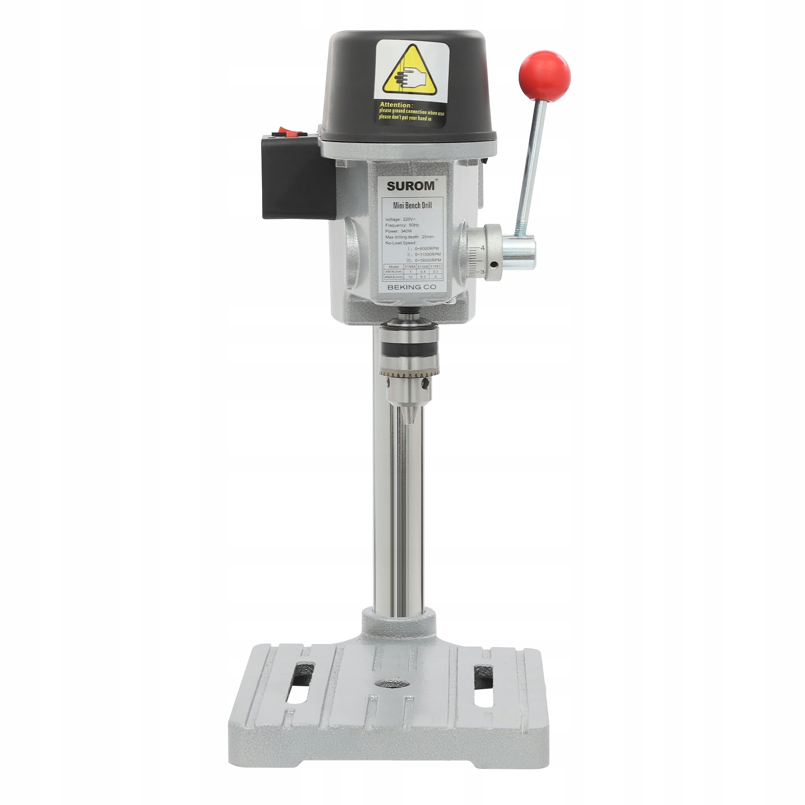 - Высокая точность сверления: Четкая маркировка на циферблате патрона позволяет визуально контролировать ход давления изделия и точно регулировать глубину сверления в пределах диапазона. 0–0,98 дюйма.