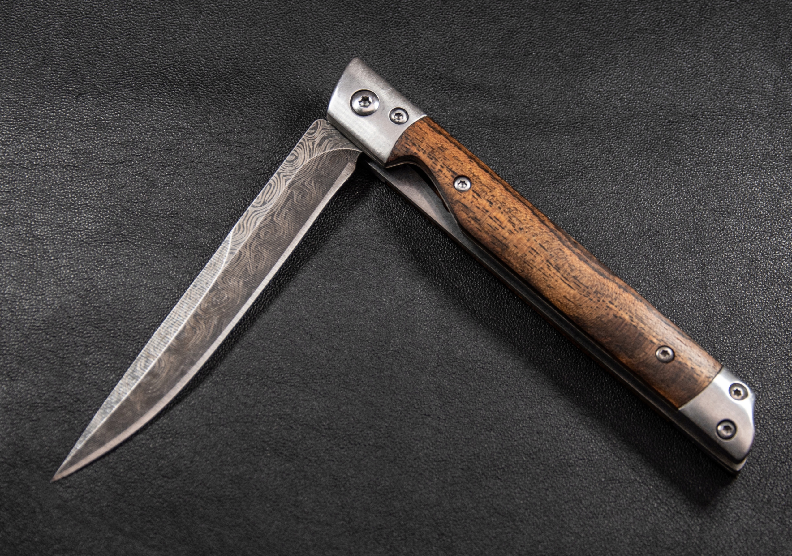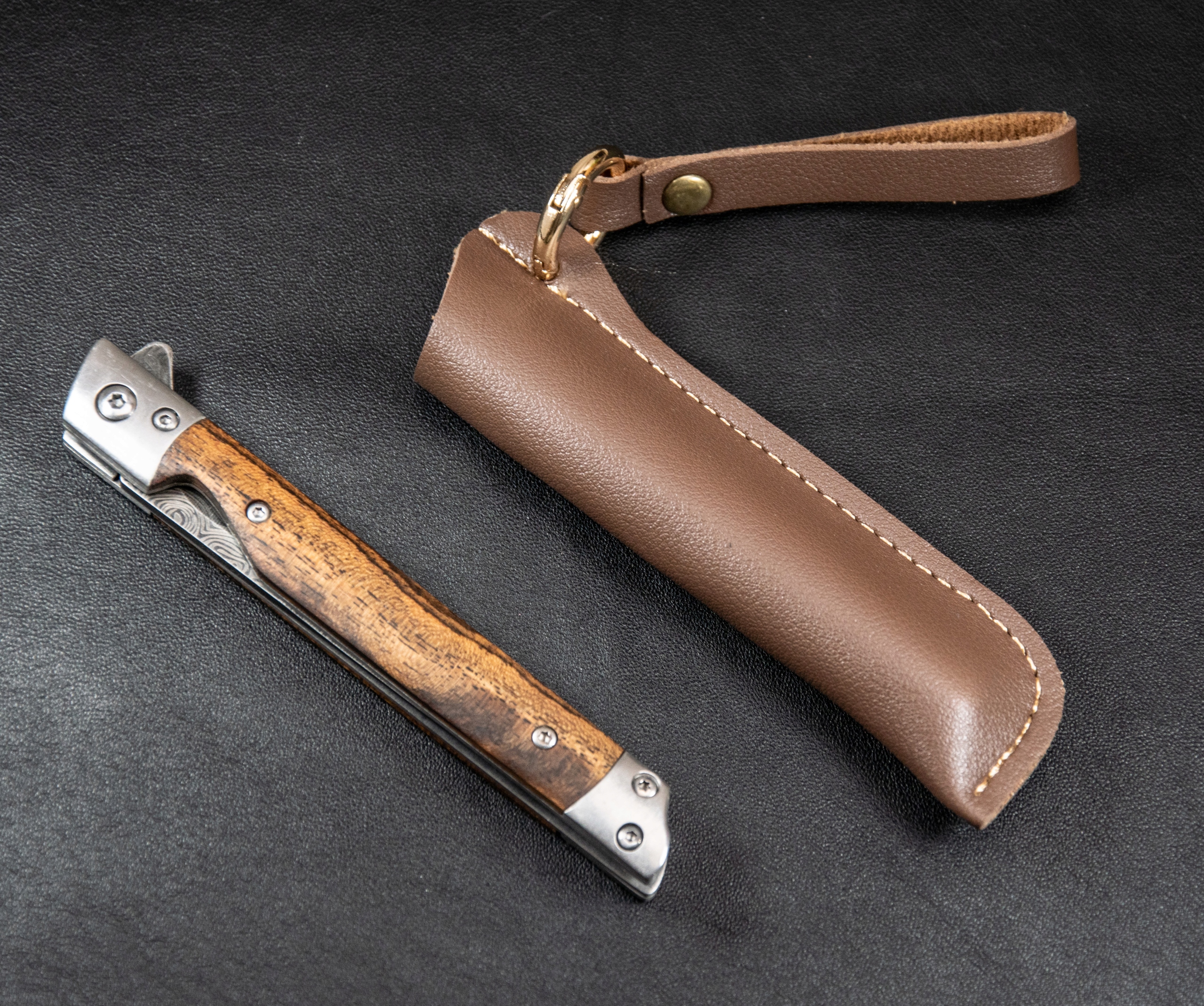 - Выкидной нож можно всегда носить с собой, а благодаря стильному футляру он станет шикарным аксессуаром.