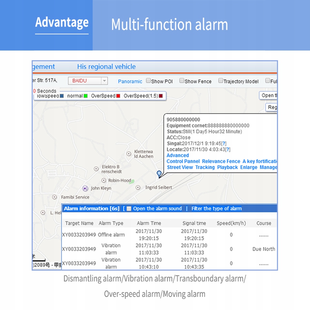 3. Многофункциональная тревога, аварийная сигнализация, тревога вибрации, перекрестная сигнализация, чрезмерная скорость тревоги, движущаяся тревога.