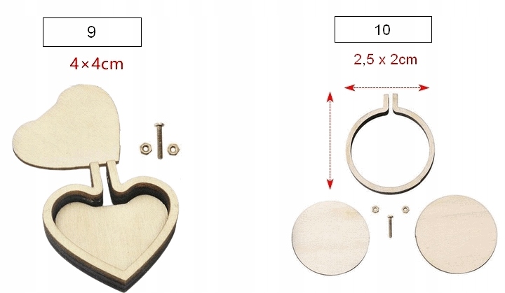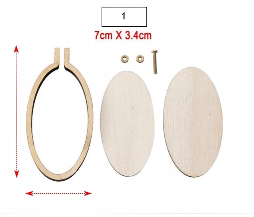 Небольшая деревянная рамка отлично подходит для создания небольших вышитых картин. Готовые картины в рамке можно носить как кулон на шею, использовать для украшения подарков и т. д. Вышитую картину следует приклеить на меньшую доску, большую доску приклеить с обратной стороны рамки, а меньшую. доску с изображением следует вставить в рамку. Рамка в верхней части крепится с помощью прилагаемых винта и гаек.