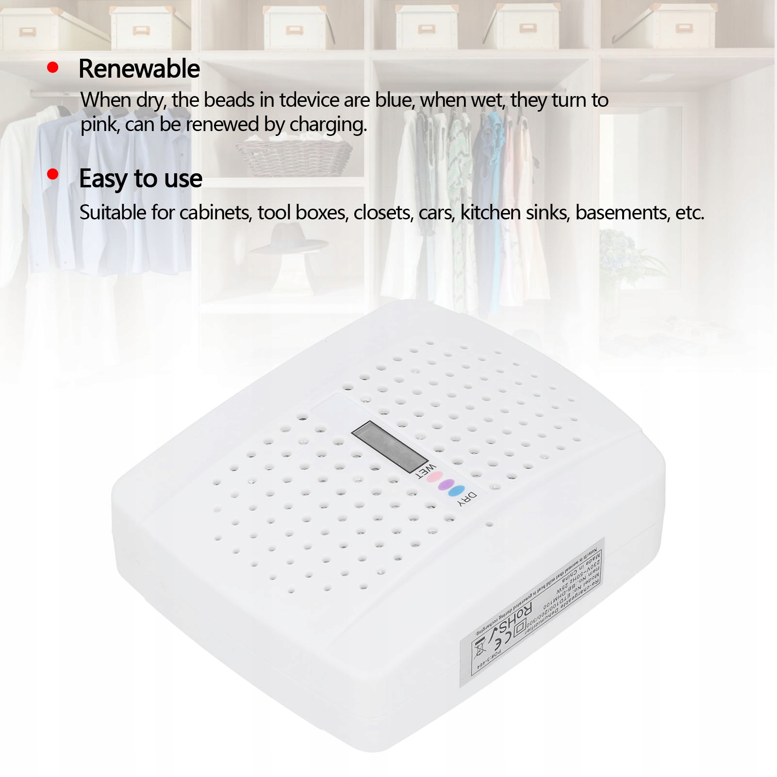 mini dehumidifier молчит многоразовое стойку гардеробового оборудования, поглощающую белый Eu 100-240 V h1>