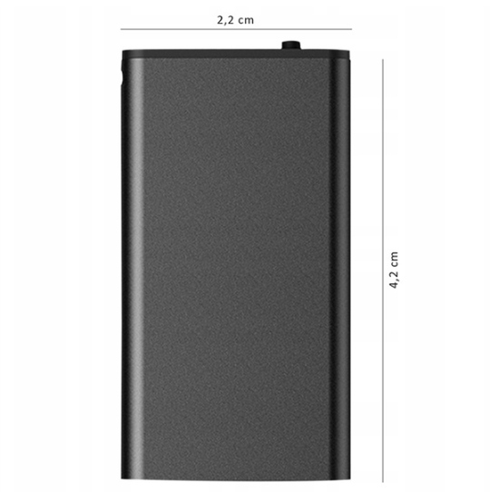 Наш диктофон чрезвычайно прост в использовании благодаря перемещению одного ползунка для включения и выключения записи. После включения записи диод загорается один раз, сигнализируя о том, что диктофон начал запись.