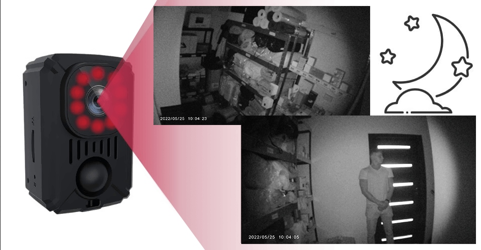 Камера оснащена инфракрасными диодами, поэтому она может работать даже в темных помещениях, а записи будут полностью видны. Режим переключается автоматически при слабом освещении, имеет довольно чувствительный сенсор, который переключается в черно-белый режим для ночной съемки.