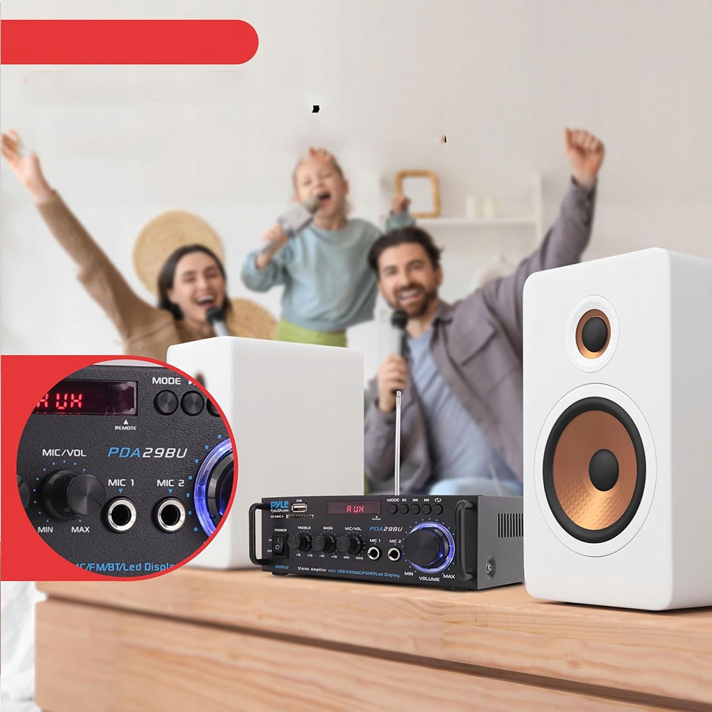 🌟🌟🌟 Большой звук в маленьком корпусе — этот компактный усилитель BT обеспечивает стереозвук RMS 50 Втx2/MAX 400 Втx2, поэтому вы можете наслаждаться чистым качеством звука. Идеально подходит для караоке, домашнего кинотеатра и звуковых систем. Идеально подходит для небольших квартир, спален, офисов, подвалов и гаражей. Компактный дизайн легко помещается на полке или в AV-шкафу.
