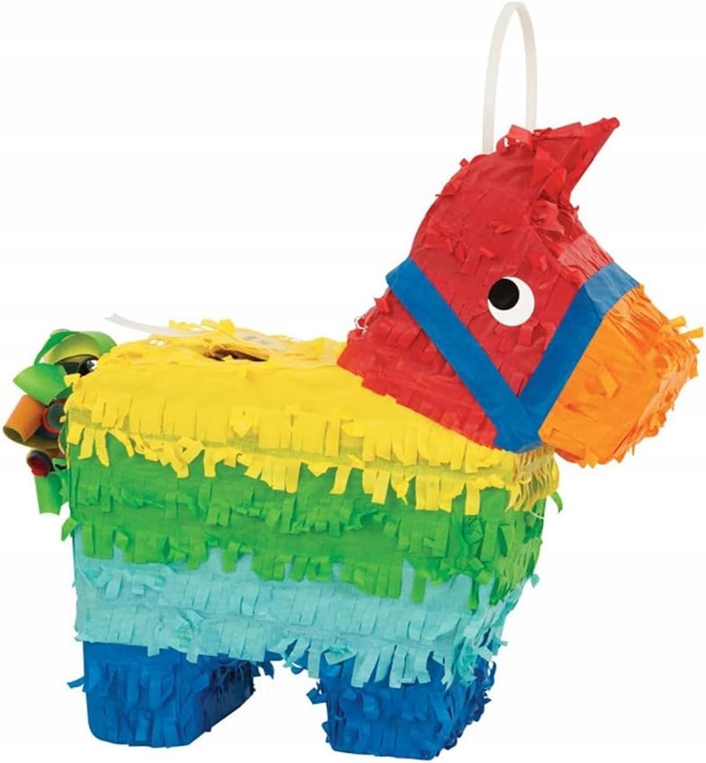 cardboard piniata с красочными лентами осла для детской вечеринки Церемония дня рождения . Эта пината, в отличие от обычного, используется не для разрыва, а в качестве мини -украшения на столе. Это может быть принесено благодаря пластиковой ручке над корпусом.