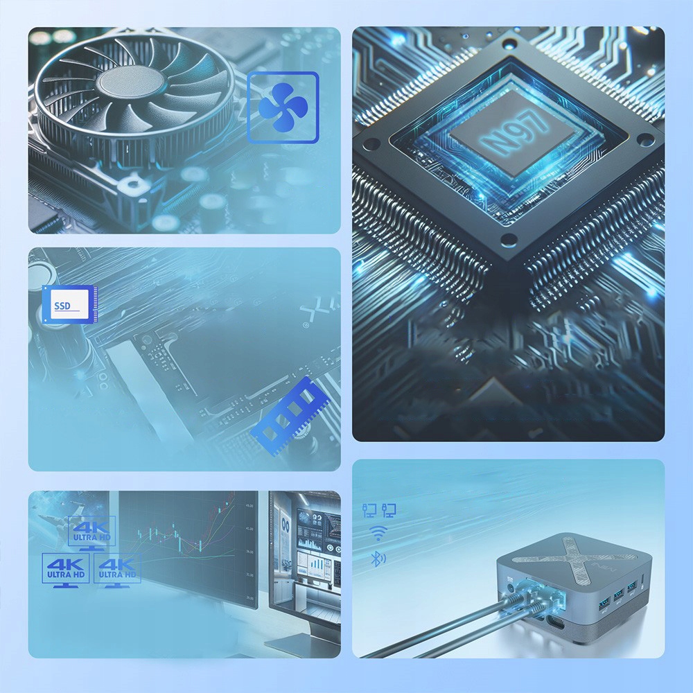 - MINIX NEO Z97 — это компактный мини-компьютер исключительной мощности, оснащенный современным процессором Intel® N97 (кэш-память 6 МБ, до 3,6 ГГц). Он обеспечивает плавную работу, быстрый запуск приложений и бесперебойную многозадачность — идеально подходит для офисной работы, мультимедиа и повседневного использования.