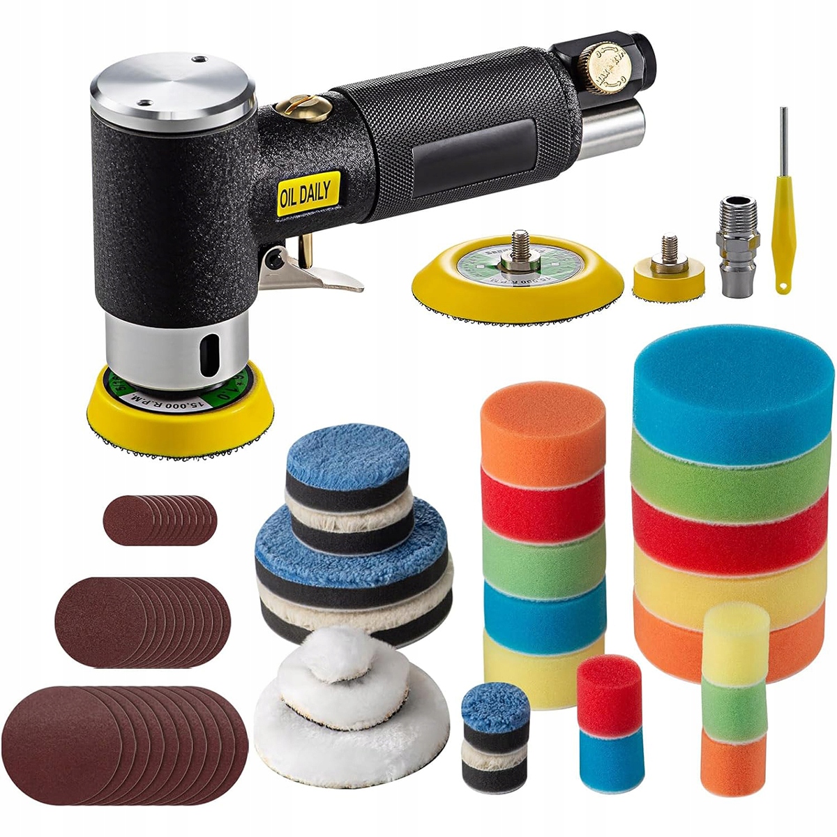 МІНІ ПОЛІРУВАЛЬНИК НА СТИСНЕНОМУ ПОВІТРІ ОСЦИЛЯЦІЙНА ШЛІФАЛЬНА МАШИНА 25/50/75 ММ НАБІР