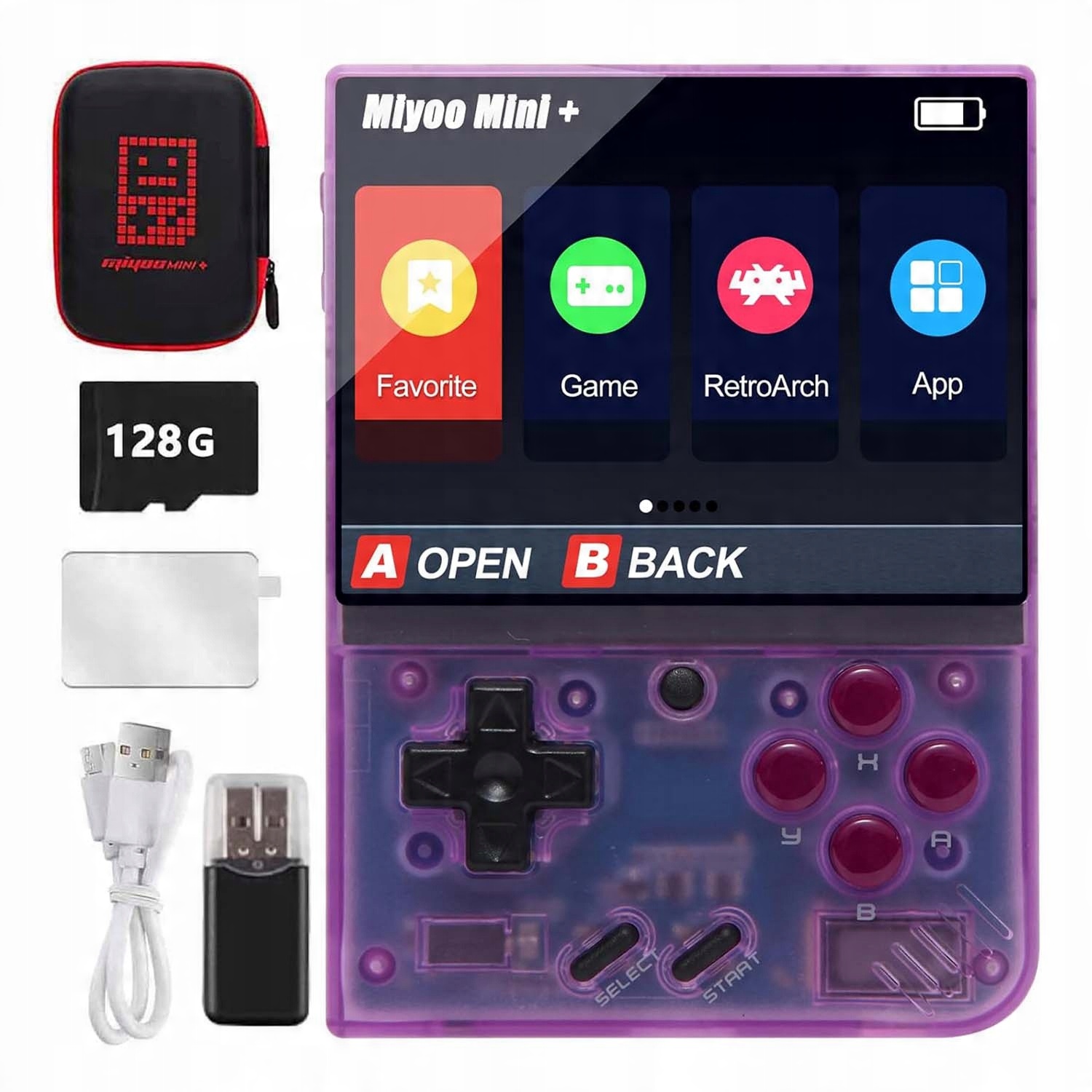 МІНІ ПОРТАТИВНА КОНСОЛЬ MIYOO 128GB LINUX RETRO, ФІОЛЕТОВИЙ