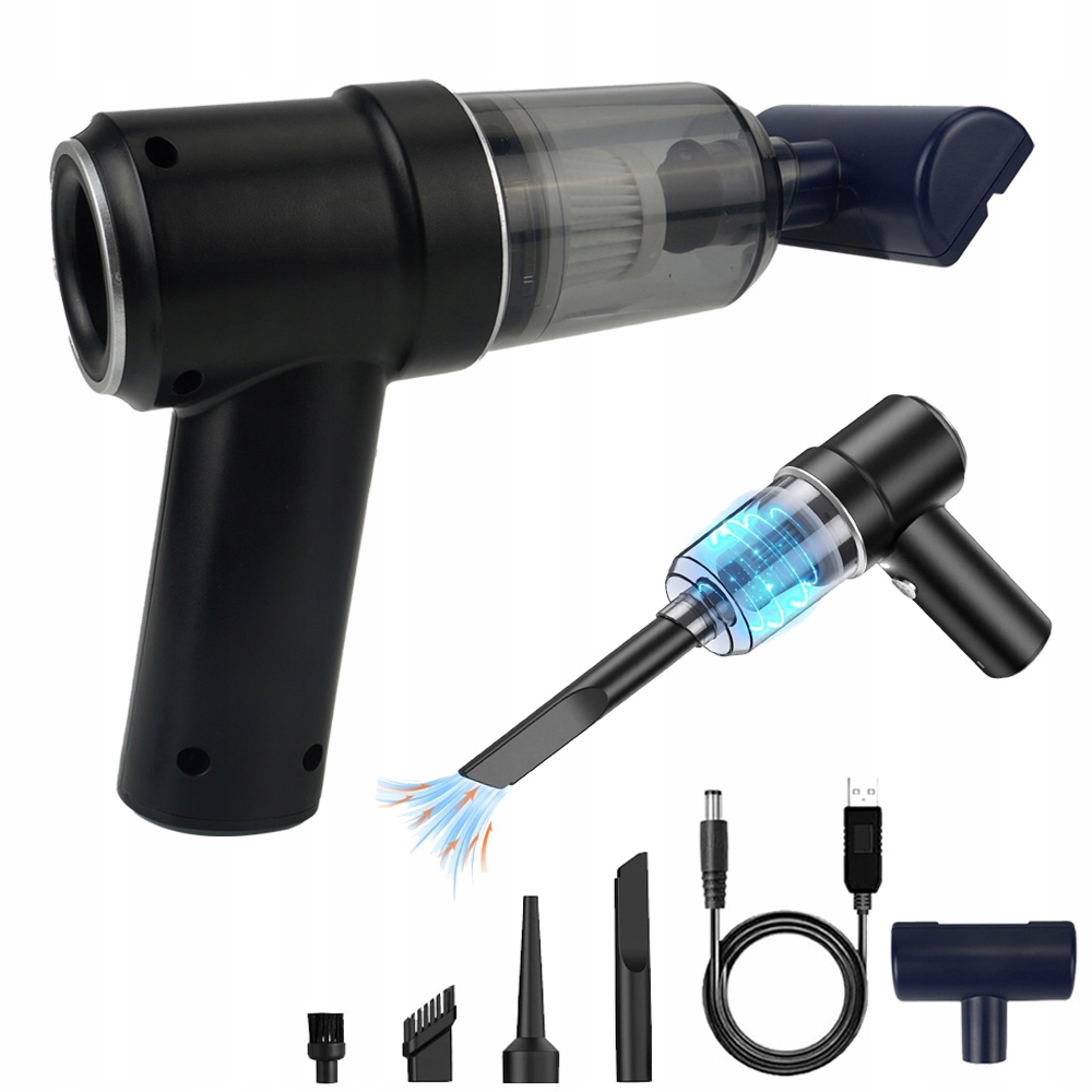 - Мини-беспроводной пылесос с различными насадками и насадками-щетками для уборки пыли. Вакуумное всасывание, вакуумная выдувка, вакуумное сжатие и надувание в одном устройстве для удовлетворения различных потребностей в уборке.