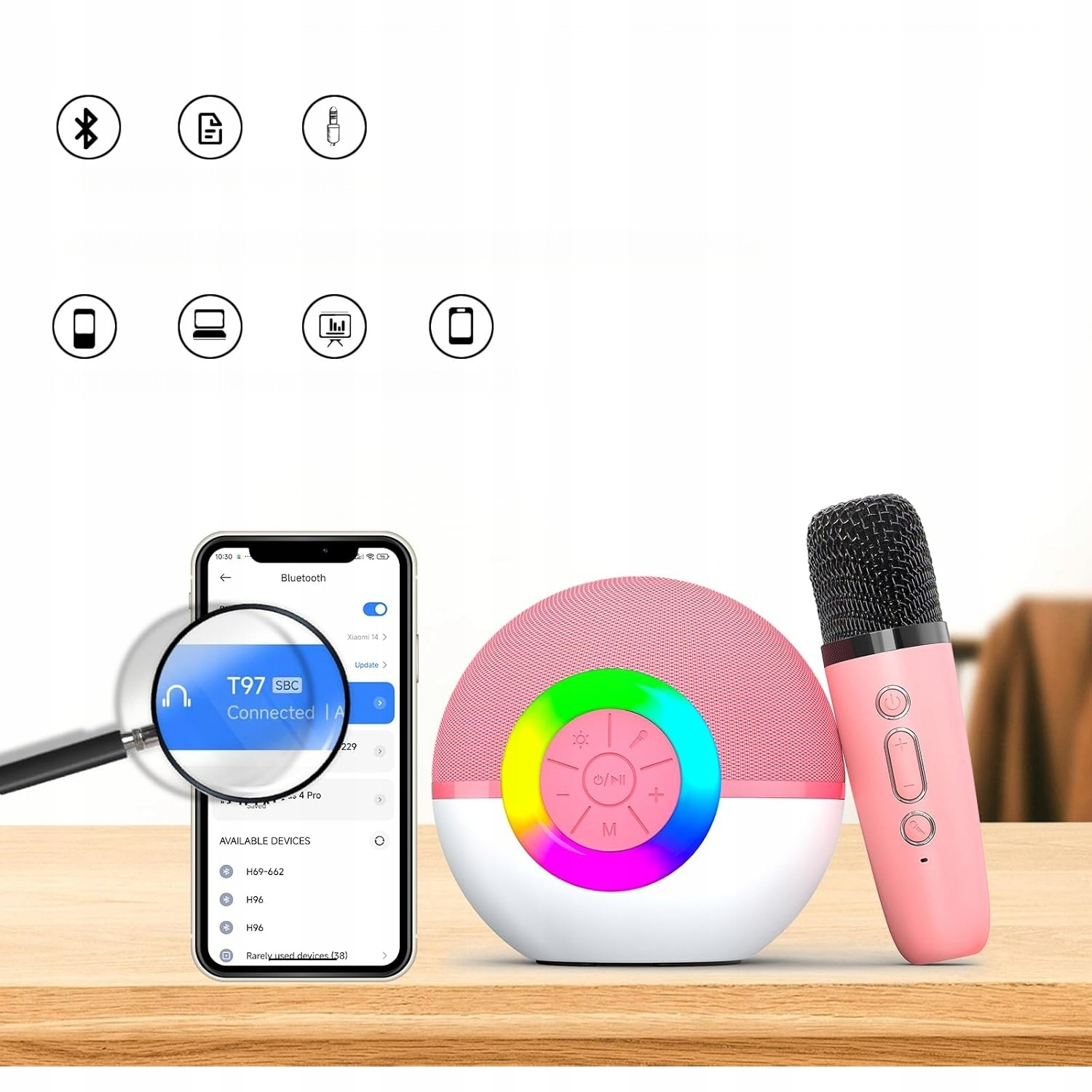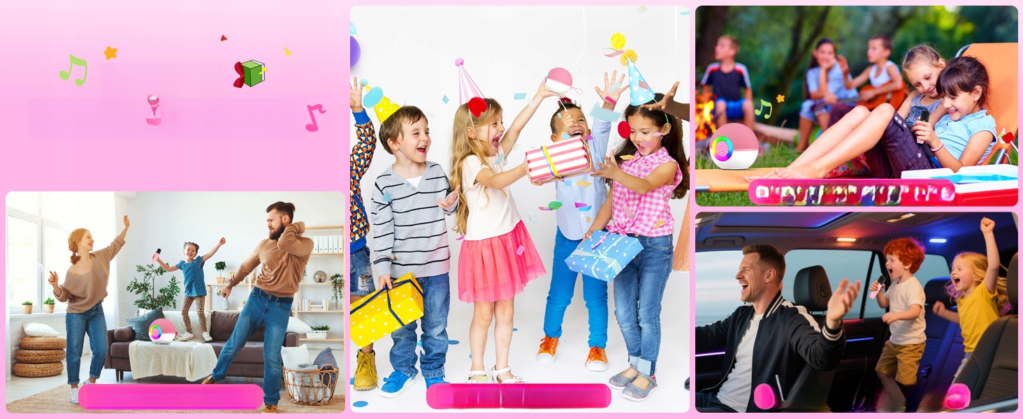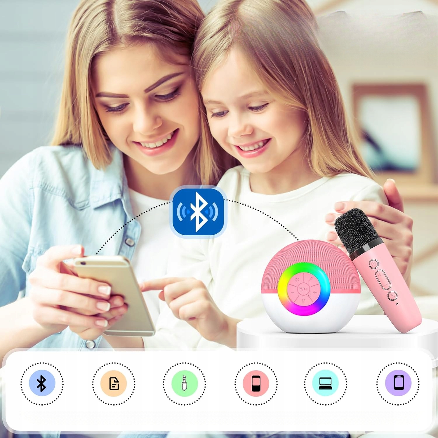 МИНИАТЮРНЫЙ КАРАОКЕ-ДИНАМИК ДЛЯ ДЕТЕЙ И ВЗРОСЛЫХ, ПОРТАТИВНЫЙ МИКРОФОН BLUETOOTH С ФУНКЦИЕЙ ПЕНИЯ И СВЕТОДИОДНОЙ ПОДСВЕТКОЙ, ЛУЧШИЙ ПОДАРОК НА ДЕНЬ РОЖДЕНИЯ ДЛЯ ДЕТЕЙ 3, 4, 5, 6, 7, 8+ ЛЕТ (PINK-2MIC)