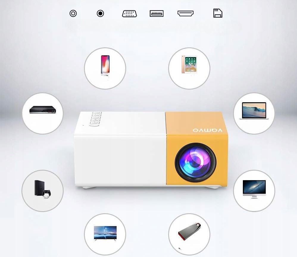 - Многие порты: малый проектор VAMVO поддерживает HDMI/USB / AV/ Audio Out 3,5 мм, совместим с Fire Stick, PS4, внешней USB -памяти, смартфонов, планшетов и ноутбуков (для подключения интеллектуальных устройств к проектору вам нужен адаптер/ кабель HDMI), соответствует многим требованиям