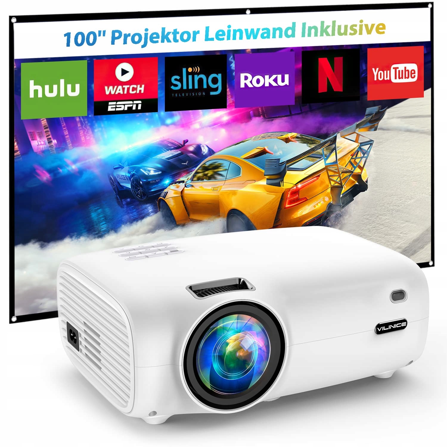 Mini Projektor, VILINICE 7000Lux Projektor do Domowego Kina z Ekranem