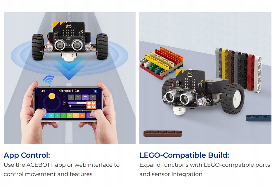✅TinkerBott ACEBOTT — образовательный мобильный мини-робот, предназначенный для обучения программированию и робототехнике в стиле STEM, совместимый с BBCMicro: bitV2