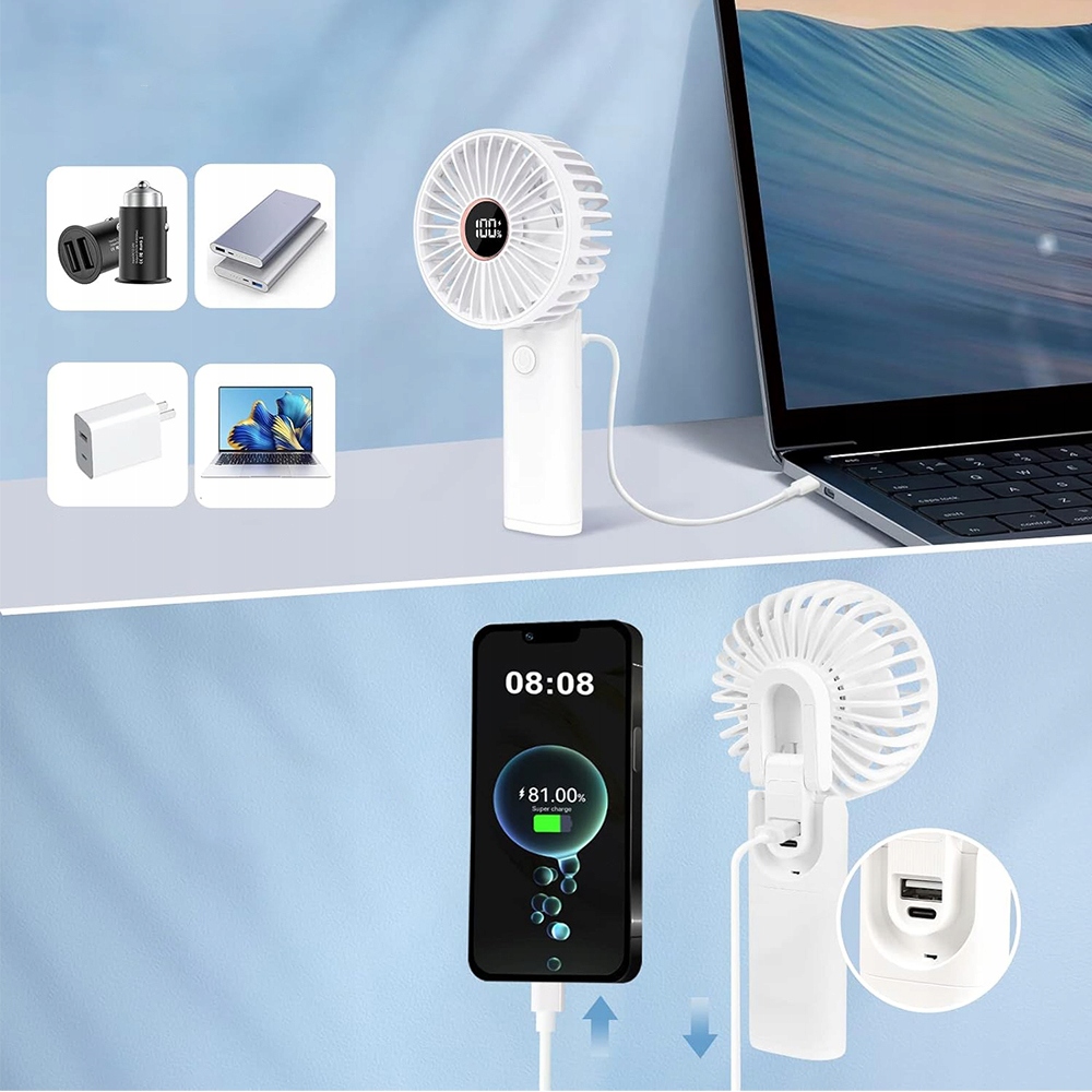 Мини-вентилятор можно сложить на 180° и легко поместить в сумку. Батарея ручного вентилятора маленькая и легкая, подходит для активного отдыха, например, путешествий, покупок и альпинизма.
