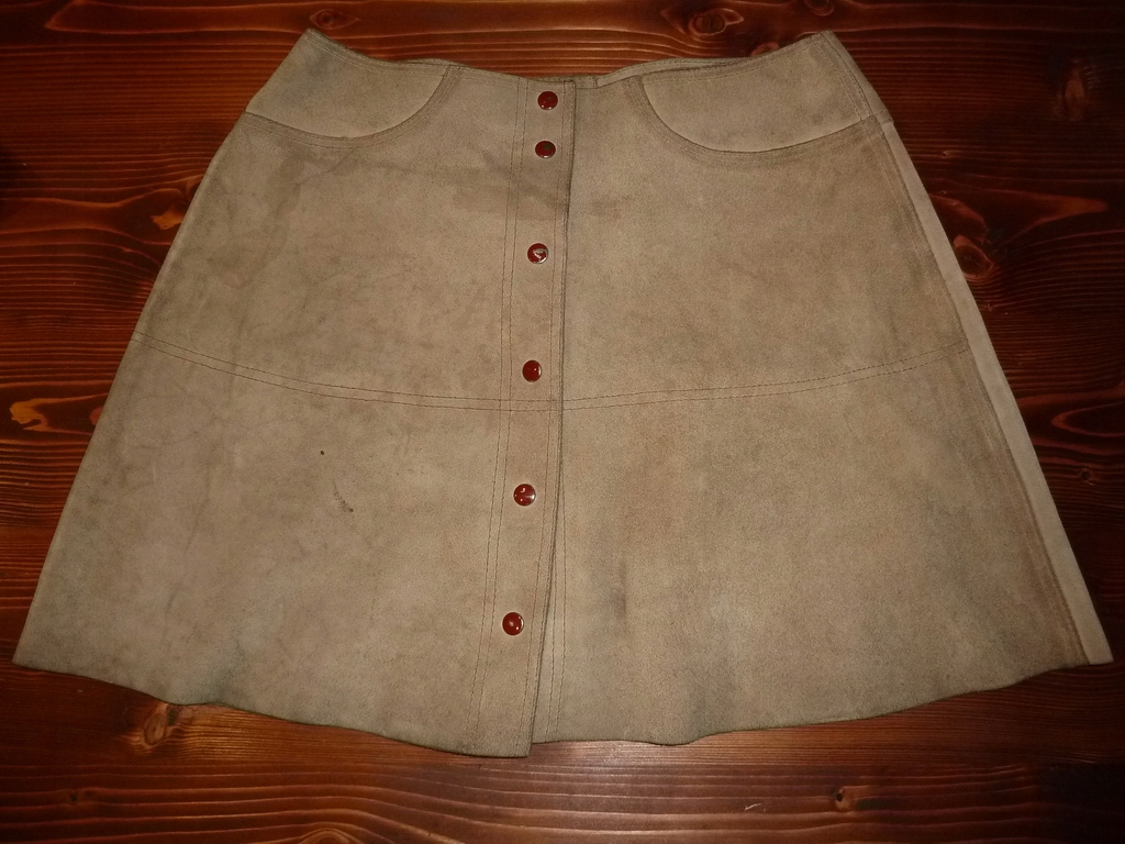 Я должен предложить оригинальную мини -кожаную юбку (вероятно, замше) с PRL с начала 70 -х