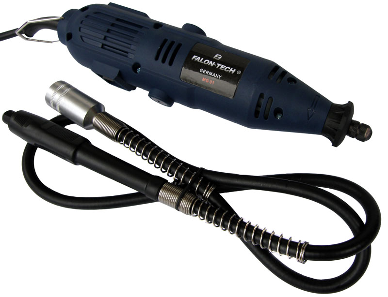 Кроме того, болгарка оснащена гибким валиком с держателем наконечника, что позволяет очень точную работу, не нагружая руку весом прибора.