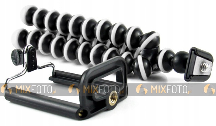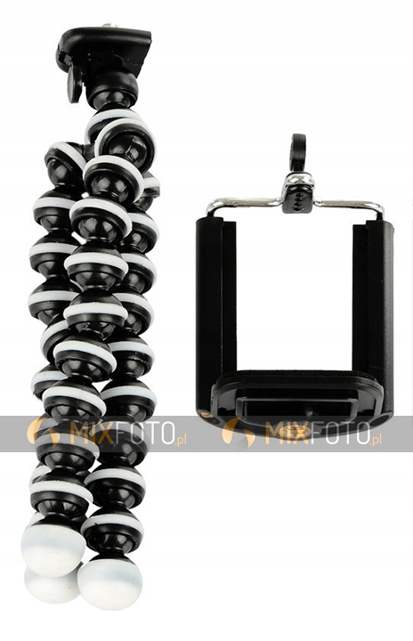 Гибкий штатив с устойчивой, прочной конструкцией и держателем для смартфонов и классических мобильных телефонов. Mobile Holder — отличное устройство, предназначенное для пользователей мобильных устройств. телефоны (смартфоны) с камерой.фотографические...Это позволит нам выравнивать и стабилизировать камеру на неровных поверхностях и объектах. Белые вставки штатива покрыты резиной для дальнейшего повышения его эффективности.