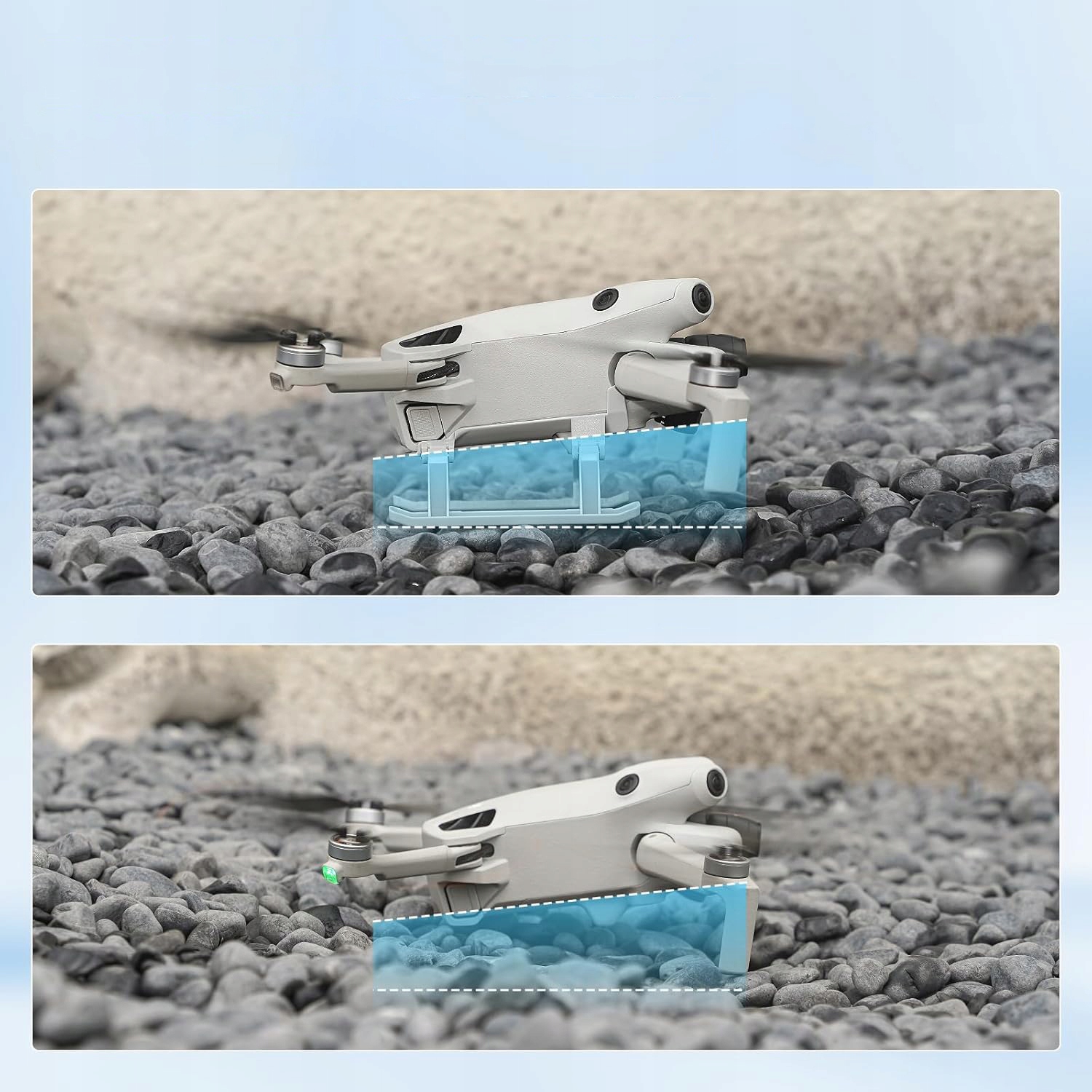 - Wydłouse nogi dodają Высота, обеспечивающая плавную старт и посадку на неровной местности, такую как снег, трава, грязь или гравия, обеспечение безопасности вашего беспилотника и каркаса