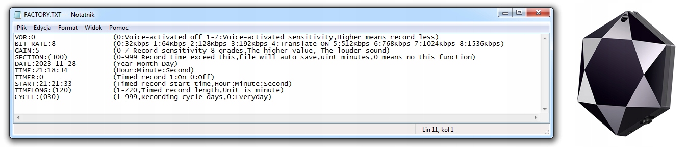 Купив мини-диктофон из нашего предложения – вы сможете произвести расширенные настройки с помощью файла FACTORY.TXT