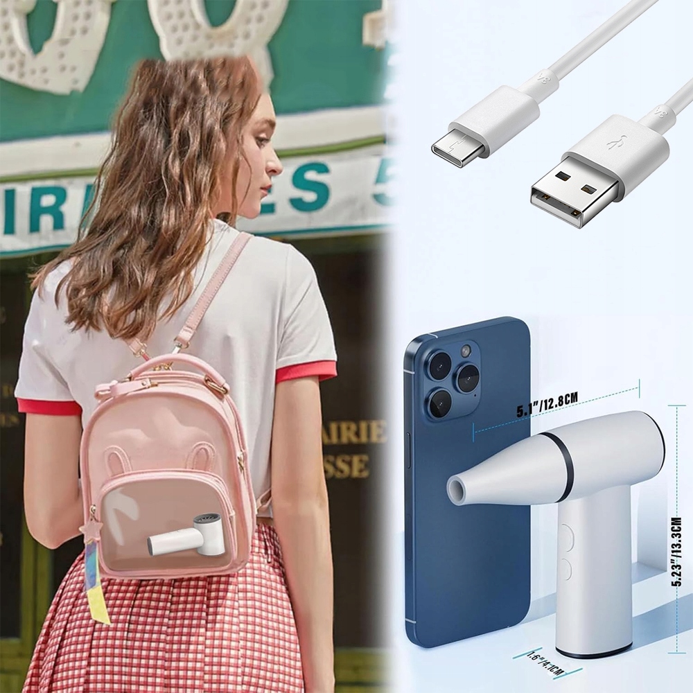 ✅Турбовентилятор с USB-аккумулятором и встроенным аккумулятором емкостью 3300 мАч, в комплекте щетка и кабель для зарядки - белый