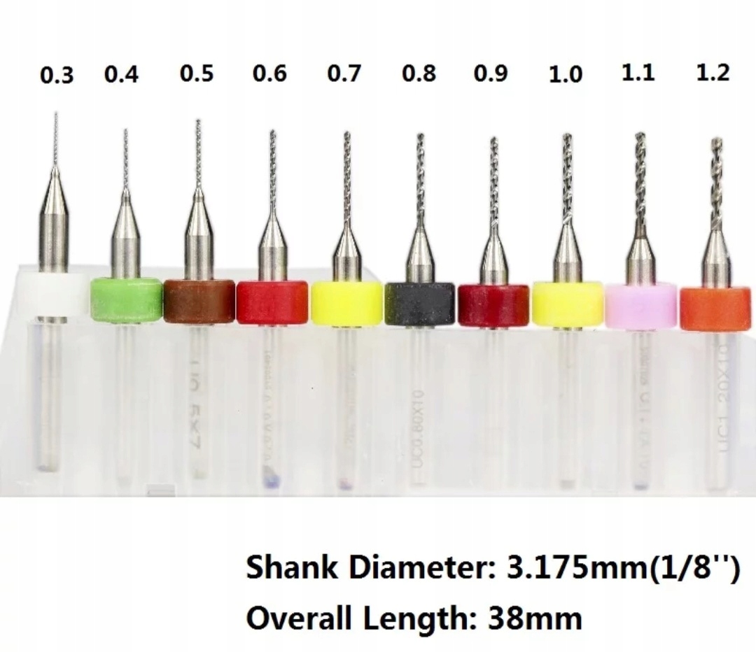 Диаметр сверл в наборе [мм]: 0,3 / 0,4 / 0,5 / 0,6 / 0,7 / 0,8 / 0,9 / 1,0 / 1,1 /1,2 б>п>