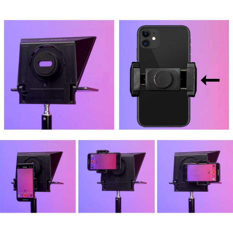 Teleprompter Feelworld TP2A, предназначенный для отображения текста с телефона или планшета и регистрации с камерой или второй смартфон . Это прост в использовании, компактный рабочий инструмент как в домашней, так и в профессиональной студии звукозаписи. Набор состоит из легкой стеклянной отражающей панели , расположенной под углом в специально разработанной раме, регулируемой стрелке для зажима, в которой вы можете разместить устройство, отображающее текст, набор адаптеры монтаж, благодаря которой может быть снят на объективе камеры и магнитной камеры и магнитной камеры и магнитной камеры и магнитной камеры и магнитной камеры и магнитной камеры. Телефон