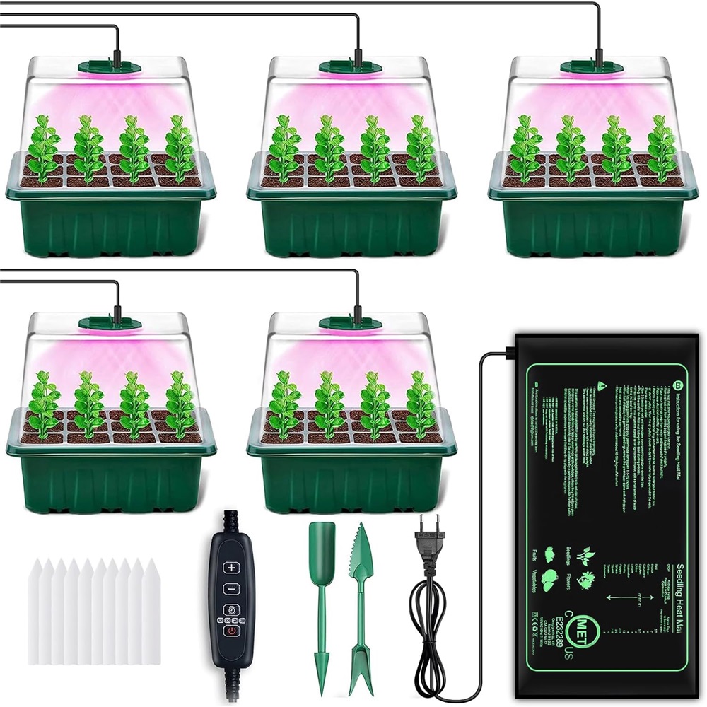 МИНИ-ТЕПЛИЧНЫЙ КОМПЛЕКТ ДЛЯ ВЫРАЩИВАНИЯ РАСТЕНИЙ 5-КАМЕРНЫЙ С ВЕНТИЛЯЦИОННОЙ ЛАМПОЙ