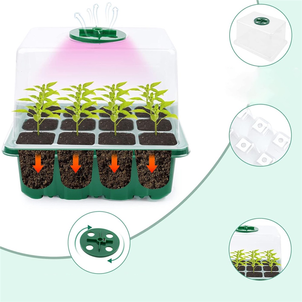 🌞 Регулируемые круглые вентиляционные отверстия поддерживают циркуляцию воздуха, поддерживая рост семян, а улучшенная приподнятая крышка обеспечивает достаточно места для семян. расти.
