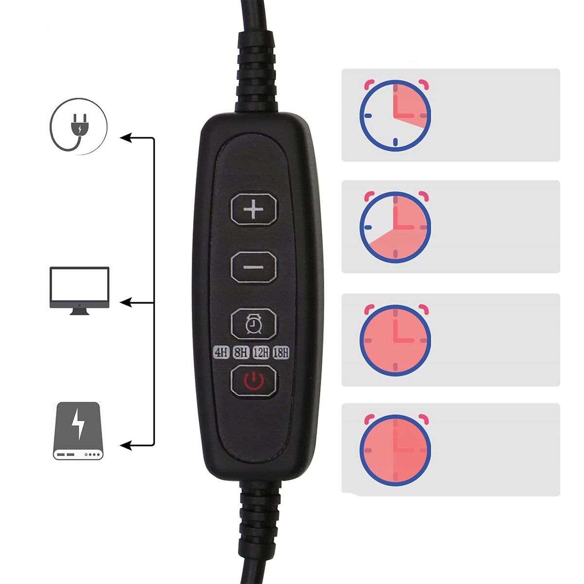 ● 5-уровневая регулировка яркости готова для вас. Он запомнит текущий временной режим (4 часа/8 часов/12 часов/18 часов) и текущую интенсивность света и автоматически включит/выключит освещение для выращивания растений.