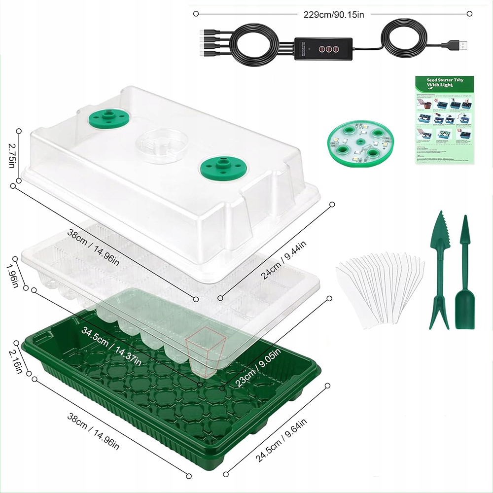 МИНИ-ТЕПЛИЦА С 8 СВЕТОДИОДНЫМИ ТАЙМЕРАМИ 3/6/12 Ч 5 УРОВНЕЙ ЯРКОСТИ ЗЕЛЕНЫЙ