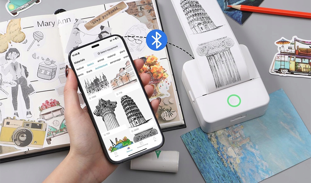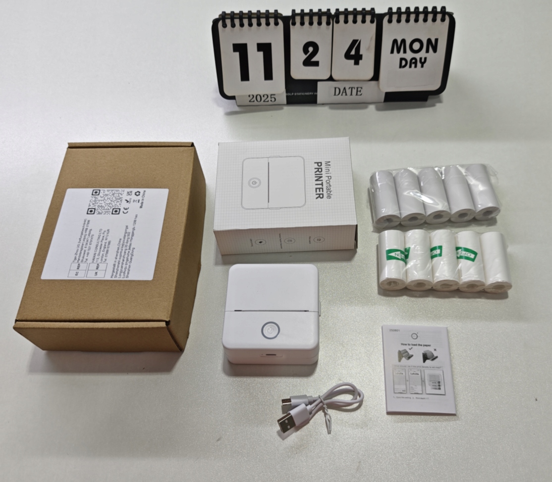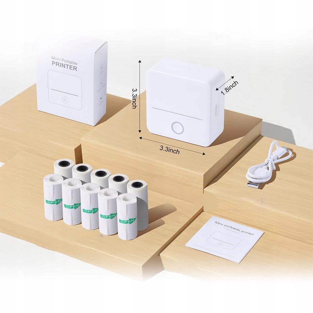 - 📷- Используя технологию термопечати, устройство печатает без использования чернил. Бумагу можно свободно обрезать до нужной длины и формы, что позволяет создавать персонализированные наклейки в любом месте и в любое время (печать только в черно-белом режиме).